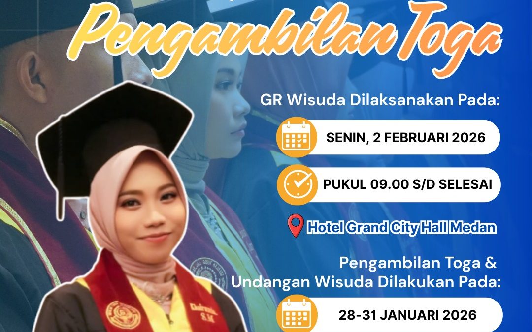 Sementara itu, pengambilan toga dan undangan wisuda dapat dilakukan pada 28–31 Januari 2026 di Kampus STIM Sukma Medan, pada pukul 09.00–11.30 WIB dan 14.00–17.30 WIB.
