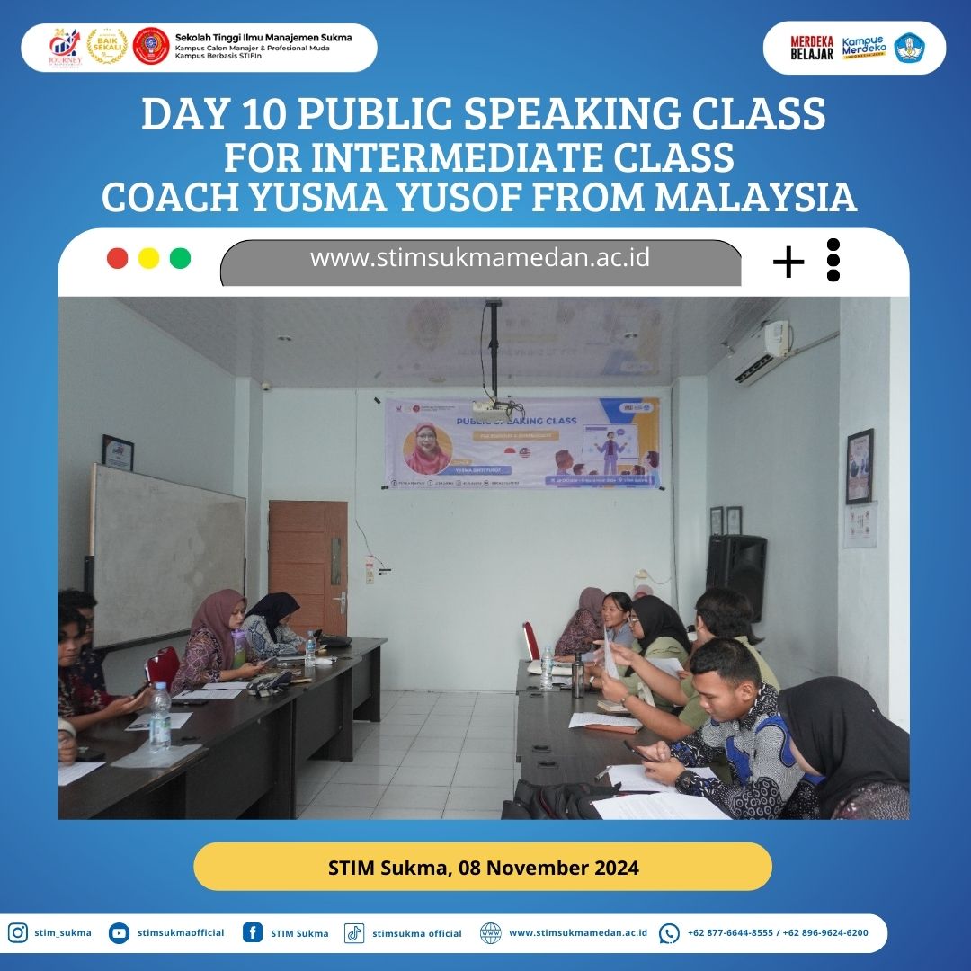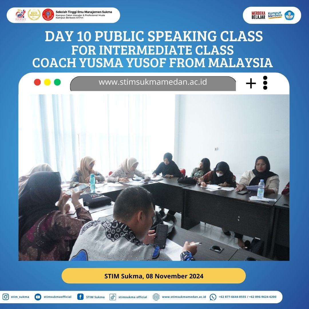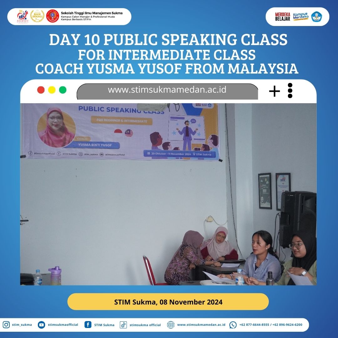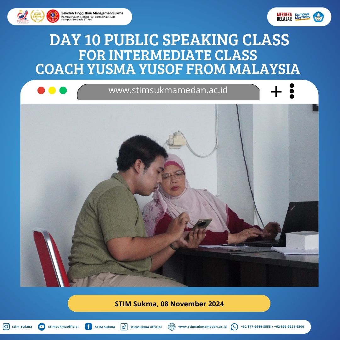 ✨ Hari ke-10 kelas Public Speaking untuk Intermediate Class di STIM Sukma Medan bersama Coach Yusma Yusof dari Malaysia! 🇲🇾 Para peserta sedang berdiskusi dan merevisi langkah presentasi mereka, memastikan setiap poin tersampaikan dengan baik dan jelas. Semoga semakin percaya diri saat tampil di depan audiens! 🎤📋💪