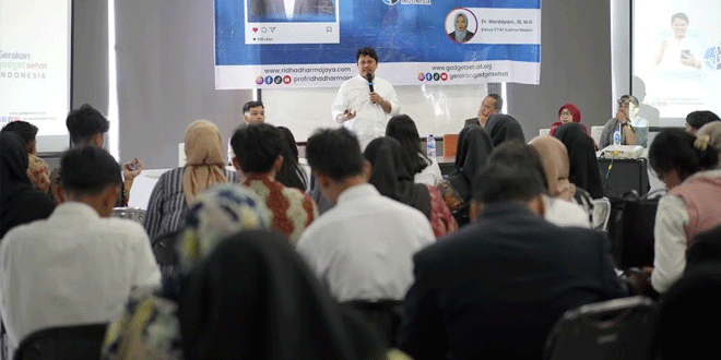 Di hadapan puluhan mahasiswa yang hadir, Prof Ridha mengingatkan dampak buruk penggunaan gadget yang salah bakal melahirkan generasi yang cacat.