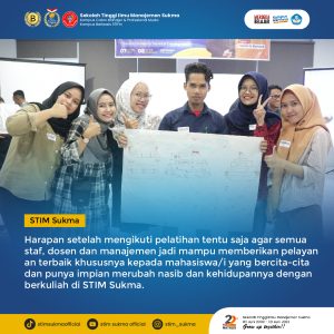 Harapan setelah mengikuti pelatihan tentu saja agar semua staf pegawai, dosen dan manajemen jadi mampu memberikan pelayanan terbaik khususnya kepada mahasiswa/i yang bercita-cita dan punya impian merubah nasib dan kehidupannya dengan berkuliah di STIM Sukma.
