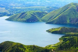 Pusat menarik dari Danau Toba ada pada pulau Samosir yang menyerupai huruf “A” terbalik, persis berada di tengah-tengah. Sekitaran Danau Toba sendiri diisi oleh lereng-lereng hijau yang subur, juga pepohonan lebat.