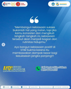 Mulai dari langkah sederhana, kamu bisa membentuk masa depan yang luar biasa. Seperti yang diajarkan di STIM Sukma: tetapkan tujuan, konsisten, dan bangun lingkungan yang mendukung.
