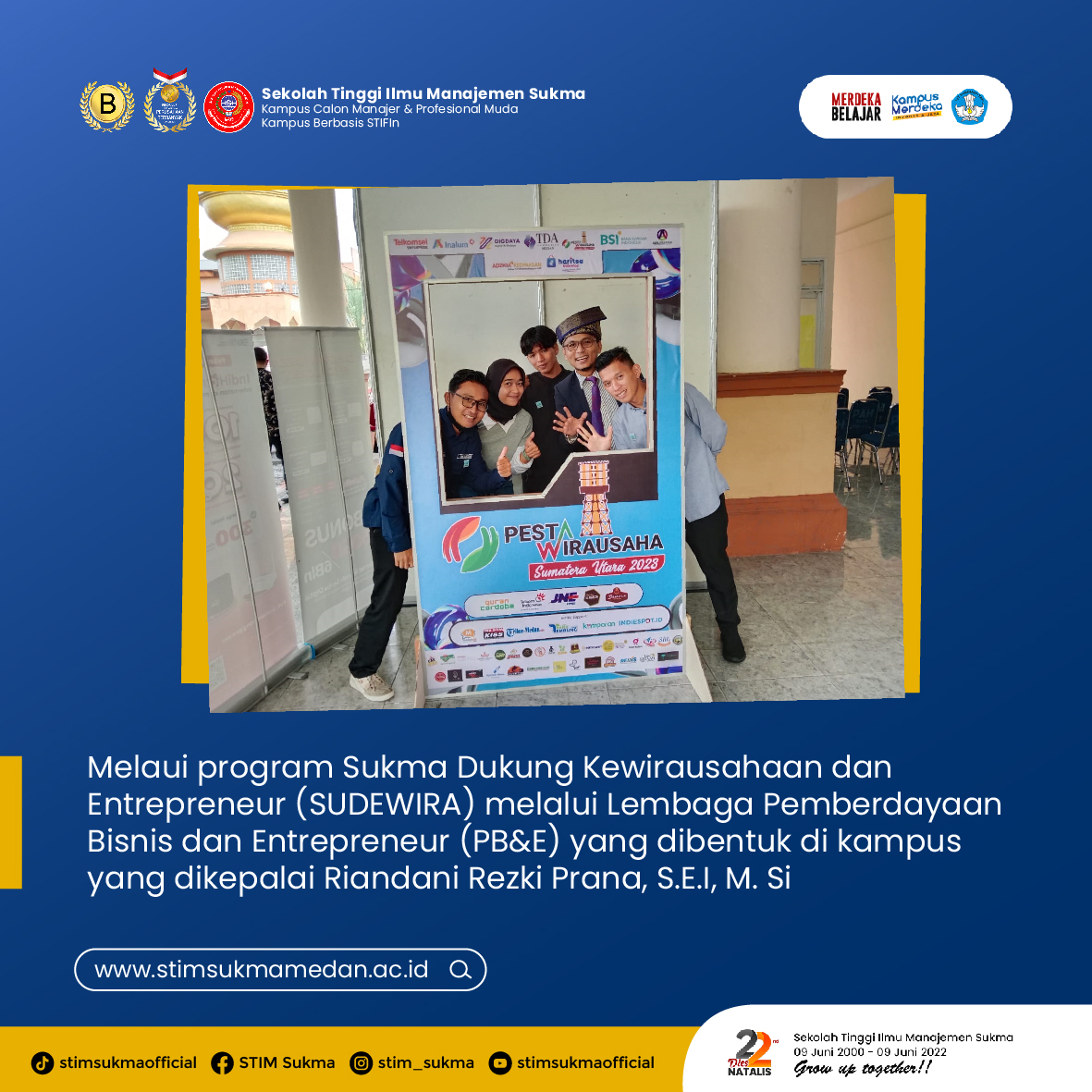 Melaui program Sukma Dukung Kewirausahaan dan Entrepreneur (SUDEWIRA) melalui Lembaga Pemberdayaan Bisnis dan Entrepreneur (PB&E) yang dibentuk di kampus yang dikepalai Riandani Rezki Prana, S.E.I, M. Si.