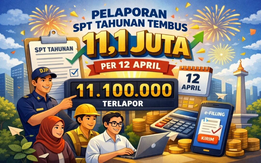 Jumlah pelaporan Surat Pemberitahuan (SPT) Tahunan pajak terus menunjukkan peningkatan signifikan. Hingga 12 April, Direktorat Jenderal Pajak (DJP) mencatat total pelaporan SPT telah mencapai 11,1 juta wajib pajak.