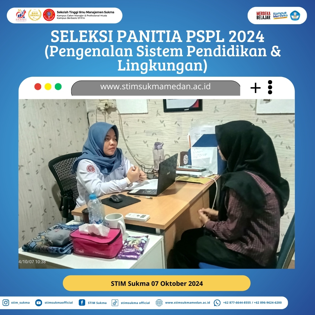 Dalam rangka persiapan pelaksanaan Sukma Leadership Camp dalam program Pengenalan Sistem Pendidikan dan Lingkungan (PSPL) bagi mahasiswa baru, seleksi panitia PSPL 2024 telah dilaksanakan di STIM Sukma.