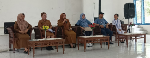 Gambar 1: Dari kiri ke kanan, staf UPT, Ibu Indria Siregar (Wakil Kepala UPT Panti Lansia, jilbab coklat tua), Ibu DR. Wardayani (Ketua STIM Sukma), Bapak Edi Winata, MM (Wakil Ketua STIM Sukma, baju biru), Adelina Sembiring S.Kep., Ns., M.Kep. (Dosen STIKES Mitra Husada Medan)