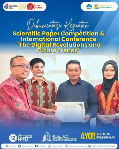 Pada ajang Scientific Paper Competition & International Conference bertajuk “The Digital Revolutions and Future Trends” yang diselenggarakan di Universitas Mahkota Tricom Unggul (12 Agustus 2025), tim mahasiswa: