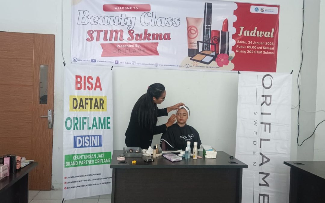 Usai agenda olahraga, kegiatan dilanjutkan dengan Beauty Class di Ruang 202 yang bekerja sama dengan Oriflame. Uniknya, sesi ini tidak hanya diikuti oleh staf kampus, tetapi juga melibatkan mahasiswa dari berbagai program studi.