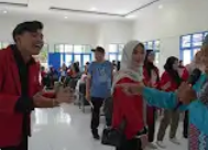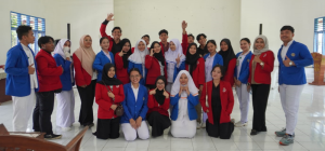 Gambar 3: mahasiswa/I STIM (jaket merah), mahasiswa/i STIKES Mitra Husada (jaket biru) dan lansia