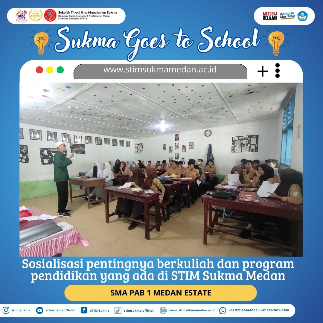 Sosialisasi pentingnya melanjutkan pendidikan ke jenjang perguruan tinggi dan memperkenalkan program unggulan dari STIM Sukma Medan di SMA PAB 1 MEDAN ESTATE