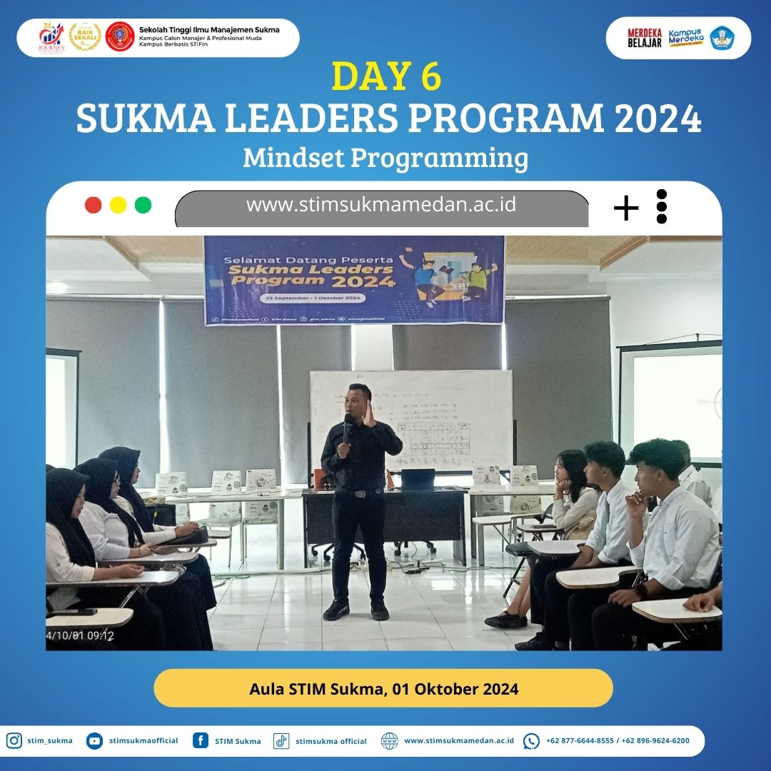 #SukmaLeaders2024 #MindsetProgramming #MentalBlockBreakthrough #KepercayaanDiri #PijakBeling #KampusSTIMSukma #MerdekaBelajar”