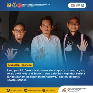 Sang pemilik Darwis Halomoan Harahap, sosok muda yang selalu aktif kreatif di industri dan pelatihan kopi dan barista sangat paham kebutuhan mahasiswa/i saat ini di dunia kewirausahaan.