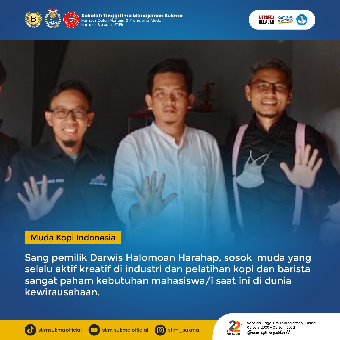 Wujud implementasi kerja sama dengan kampus STIM Sukma dengan Muda Kopi Indonesia sebagai mitra kampus adalah pemagangan bersertifikat.